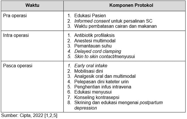 Tabel 1. Komponen Protokol ERAS pada Persalinan Sectio Caesarea
