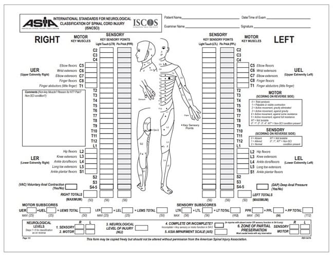 Gambar 1. Pemeriksaan Standar untuk Menilai Spinal Cord Injury Menggunakan ASIA Score[1]