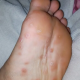 Dari lesi di telapak tangan, apalagi di telapak kaki, diagnosa kerjanya adalah Sifilis Stadium 2. Sifilis pada stadium ini dikenal sebagai The Great Immitator karena dapat menyerupai kelainan kulit yang luas, tetapi ruam2 merah tembaga di telapak tangan atau kaki bisa menjadi tanda yg khas untuk Sifilis Stadium 2. Untuk menegakkan diagnosis, sangat diperlukan pemeriksaan VDRL dan TPHA, kedua pemeriksaan ini berguna tidak hanya untuk menegakkan diagnosa tetapi bisa dijadikan parameter untuk keberhasilan terapi nanti.