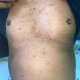 Bagaimana kebersihan pasien dok, apakah tinggal sendiri. Saya curiga dengan sebaran tidak merata tersebut terutama terlihat didada bisa kearah scabies.Dari selama ini berobat apakah ada "pengobatan scabies" sebelumnya?.Kalau belum bisa dicoba terapi scabies dulu 1 bulan kedepan. Sambil diedukasi tentang kebersihan serta pemcegahan scabies agar tidak berulang.