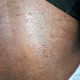 Lesi pada area gatal tampak, kering, terdapat luka bekas garukan, hiperpigmentasi dengan batas tidak tegas.