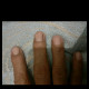 Jari tangan terdapat garis hitam di sisi kiri dan kanan kuku,hampir di semua jari tangan, hilang, timbul.