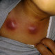 Laki-laki, 4 thn dgn benjolan seperti bisul di leher kanan dan dada timbul sejak 2 hari yll, nyeri ( ), eritem ( ). Benjolan ini munccul berbarengan 4 buah dok. Mau konsul kira-kira ini abses, limfadenitis atau ada kemungkinan yang lain ya dok?