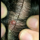 Mungkin bisa di dd dok untuk diagnosa ke user. Kalau dilihat dari bentuknya dan berdarah bila ada penggarukkan mungkin bisa mengarah ke hemangioma ya dokter. Atau bisa juga mengarah ke suatu benjolan atau tumor lainnya misalnya abses..