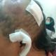 luka robek ditelinga ada dibelakang telinga dan di daun telinga atas.di daun telinga atas tertinggal sedikit kulit jadi dirapikan saja.yg dibelakang telinga di heacting 5 jahitan .luka robek dikepala dijahit 2 jahitan.... gdr 330...gdp 281Β