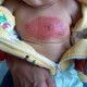 Dari pengakuan pasien, awal lesinya bintik kecil kemerahan dan padat dok. Ukuran 1 mm. Sempat di berikan dedaunan tradisional yg sudah di rebus.