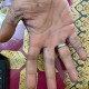 Menurut pengakuan pasien ruam awalnya muncul dibelakang telinga, leher, dan seluruh tubuh, pada hari ke 5 pengobatan ruam muncul di jari-jari tangan. Karena ruam berisi cairan, pasien memecahkan sendiri ruamnya dan berinisiatif menaburkan bubuk kopi pada jari-jari tangan. Pasien kemudian mendapatkan salep antibiotik dan disarankan untuk menggunakan calamin lotion untuk mengurangi rasa gatal.
