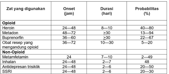 Tabel 1. Onset, Frekuensi, dan Durasi NAS Berdasarkan Zat yang Digunakan