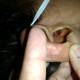 Izin berdiskusi.. dari foto yang dikirim ke curigaan saya benjolan berwarna kemerahan tersebut merupakan jaringan granulasi CAE.. yang umumnya terjadi karena iritasi kronis pada lapisan kulit CAE, bisa karena sering dikorek-korek sebelumnya ataupun iritasi dari cairan gendang telinga (riwayat OMK sebelumnya)..