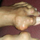 Kalau dilihat dari gambar-gambar ini yang disebut dengan Rheumatoid Arthtritis yaitu peradangan sendi yang hebat yang disebaboan dengan kadar asam urat didalam darah tinggi sehingga terjadi pengkristalan di setiap sendi makan tidak heran dilihat dari foto benjolan tersebut adanya di sendi-sendi tubuh, dan biasanya kalaupun sembuh biasanya meninggaloan cacat striktura di tempat sendi yanh di serang. Biasanya pengobatannya yany utama di berikan penurun asam urat allopurinol 300mg selamat 10 hari, terus dicari makanan yang di makan pasien yang menyebabkan kadar asam uratnya tinggi dan apabila pencetusnya telah ditemukan di suruh hindari makanan tersebut, dan di berikan obat lainnya sepert golongan nsaid meloxicam di racik bareng analgetik paracetamo, yerus diberikan racikan lagi campuran ranitidin dexamethasin, natrium diklofenak dan muscle relaxan eaperison seperti myonal, dan di berikan juga juga golongan neurotropik mecobalamine 500mcg