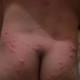 awal,muncul ruam bintik2 merah saja di sertai panas,kemudian mucul seperti papul dan ada pula seperti vesikel.(dengan jumlah dominan papul 95 %).