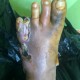 4. Kontrol luka, yaitu lakukan nekrotomi, dan dri gambar tampak sdh bone exposed - boleh dilakukan amputasi digiti dalam anestesi blok digital, pastikan luka terdrainase dgn baik agar pus bs keluar guna mencegah ascending infections, pengguna wound dressing seperti hidrogel, atau madu