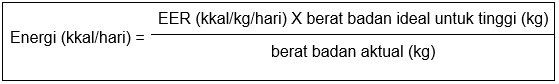 Estimasi kebutuhan energi untuk kejar tumbuh anak malnutrisi dapat dihitung dengan cara berikut: